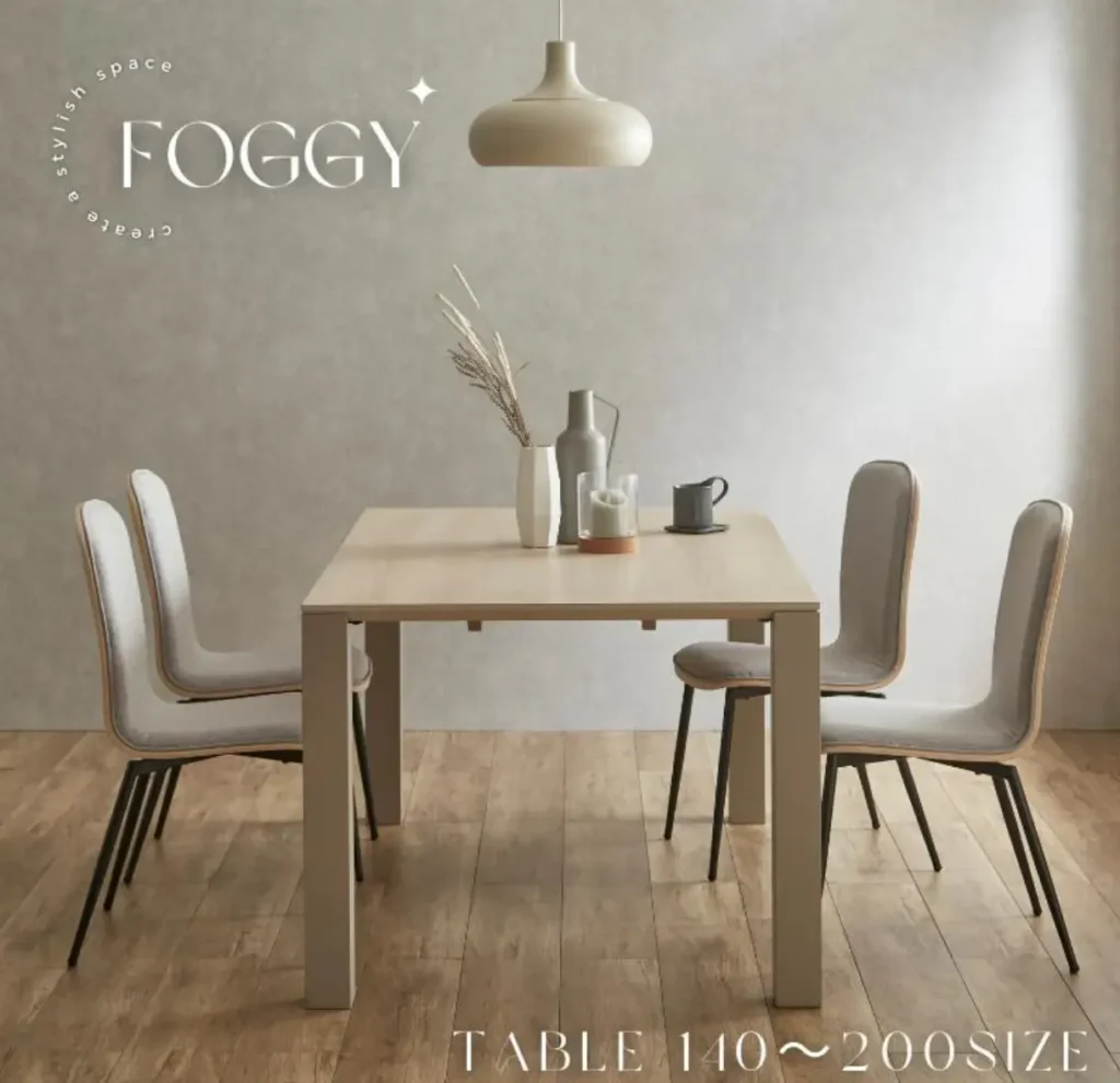 - FOGGYシリーズのダイニングテーブルは、幅140cmから200cmまで10cm刻みで7サイズ展開